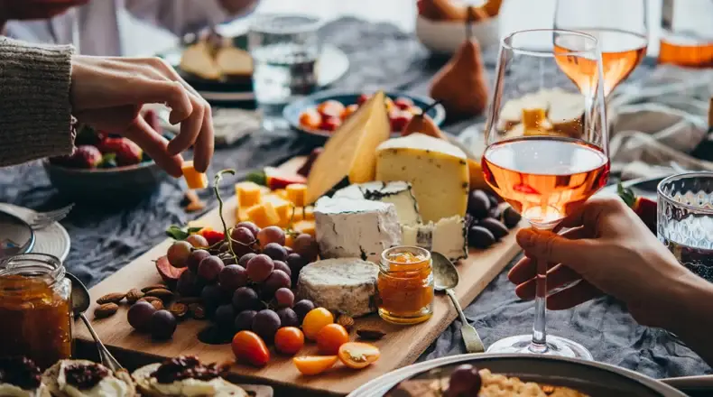 The focus is on continuous eating and drinking over many toasts, so drinkability matters more than specific pairings.